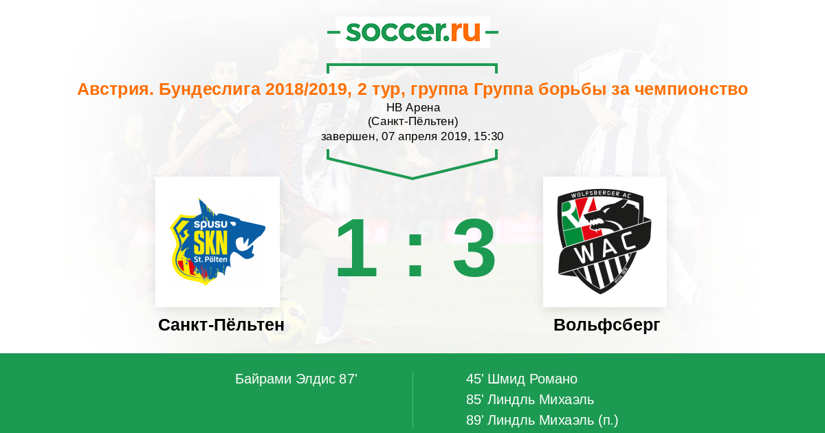 Протокол матча Санкт-Пёльтен против Вольфсберг
