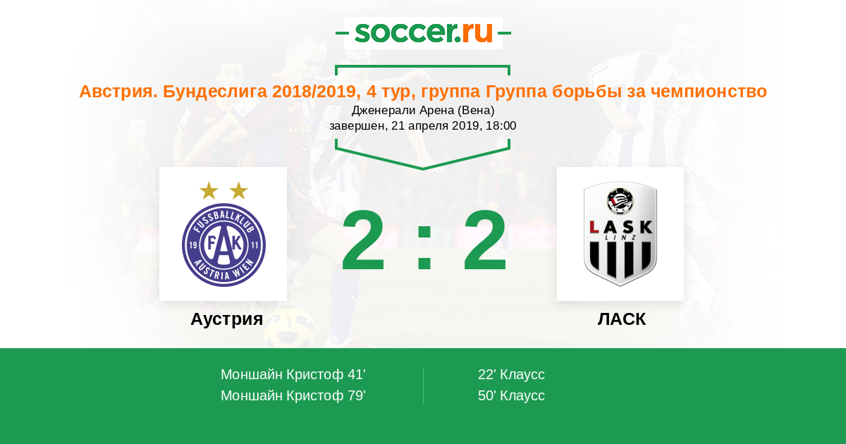 41' (1:1) Моншайн Кристоф (14) (Мартщинко Кристоф (28))