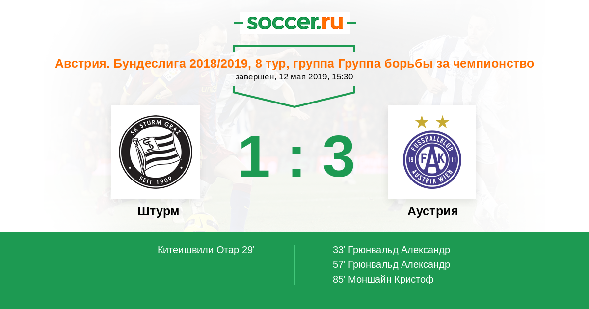 Протокол матча Штурм против Аустрия