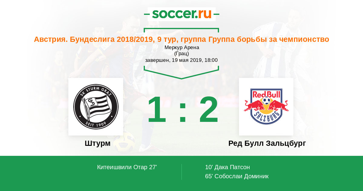 Протокол матча Штурм против Ред Булл Зальцбург