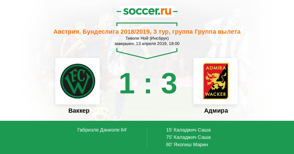 Протокол матча Ваккер против Адмира