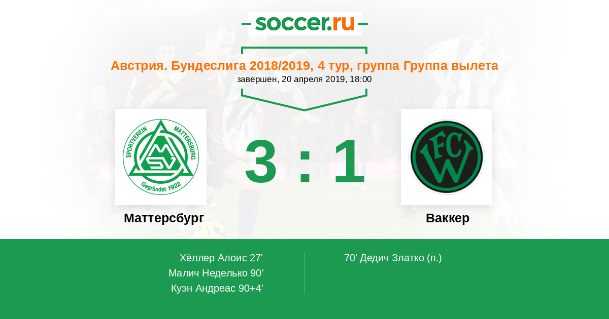Протокол матча Маттерсбург против Ваккер