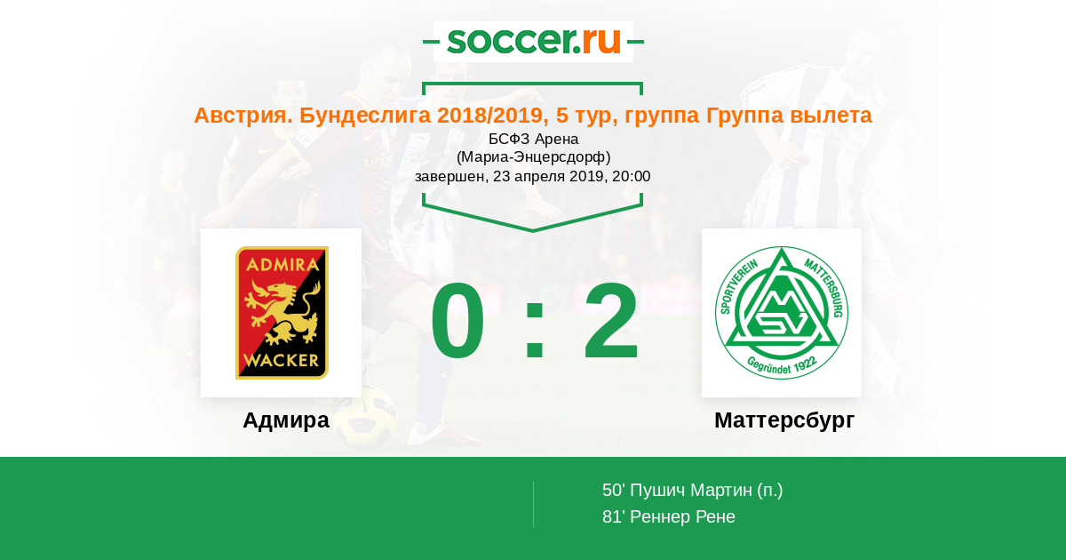 Протокол матча Адмира против Маттерсбург