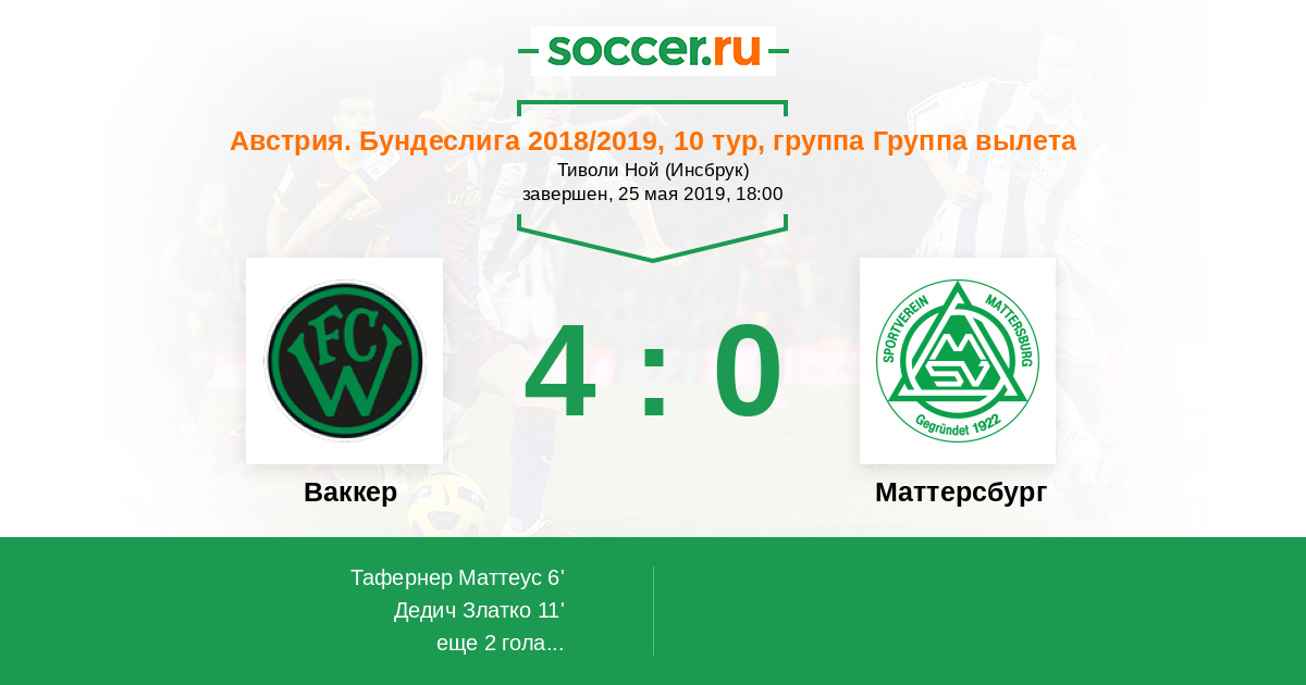 6' (1:0) Тафернер Маттеус (70) (Раковиц Штефан (10))