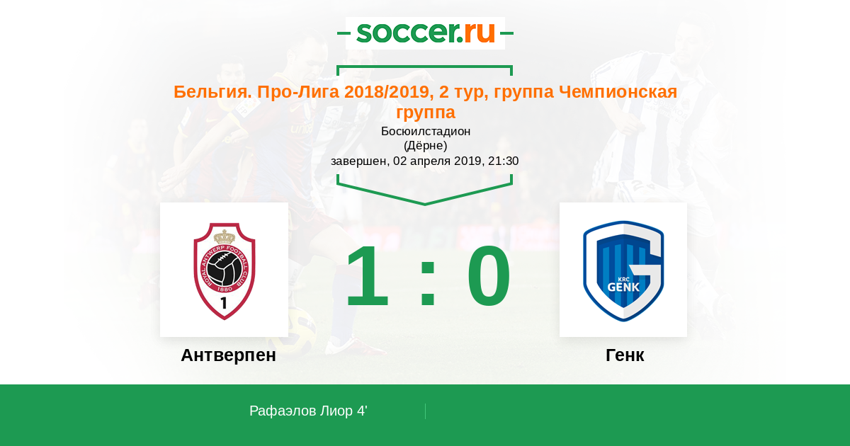 Протокол матча Антверпен против Генк