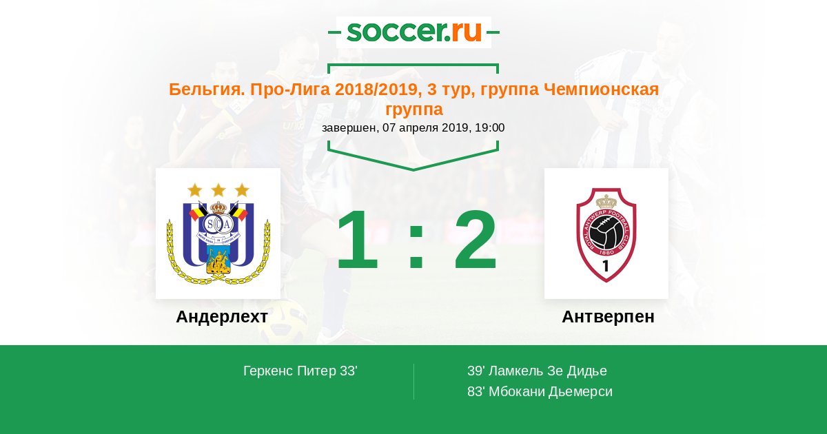 Протокол матча Андерлехт против Антверпен