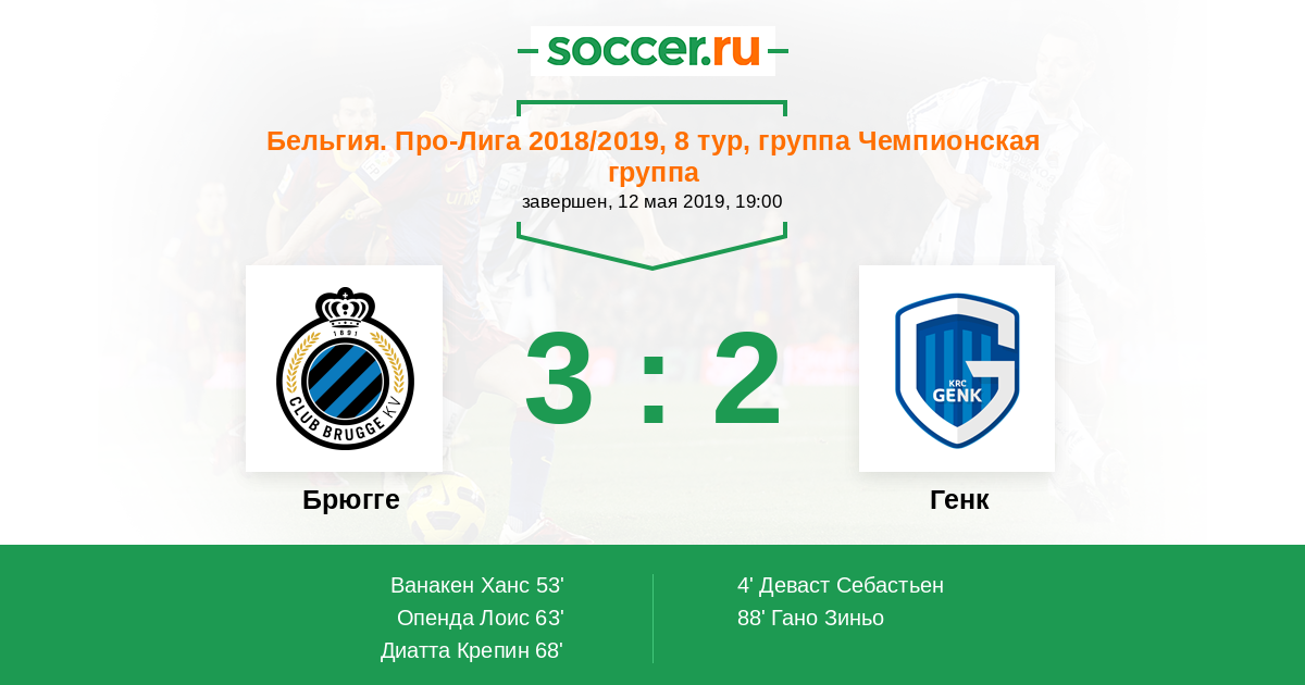 Протокол матча Брюгге против Генк