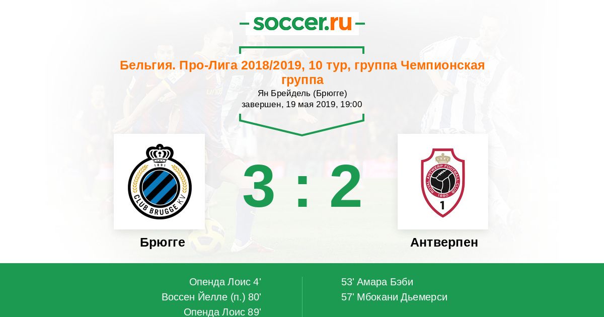 Протокол матча Брюгге против Антверпен