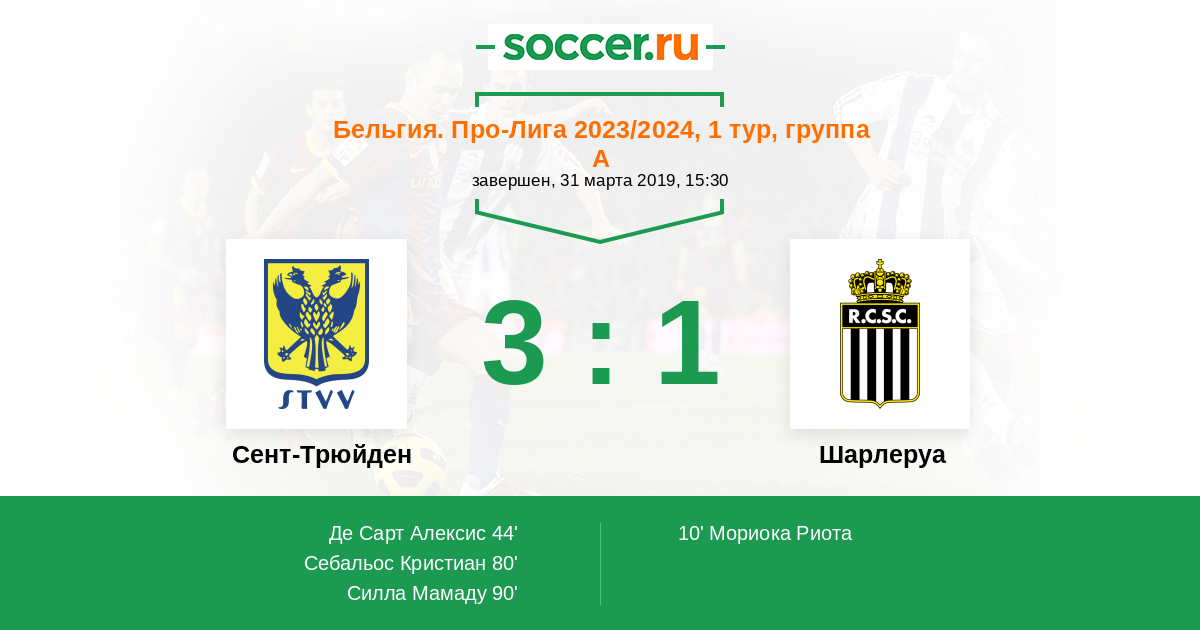 Протокол матча Сент-Трюйден против Шарлеруа
