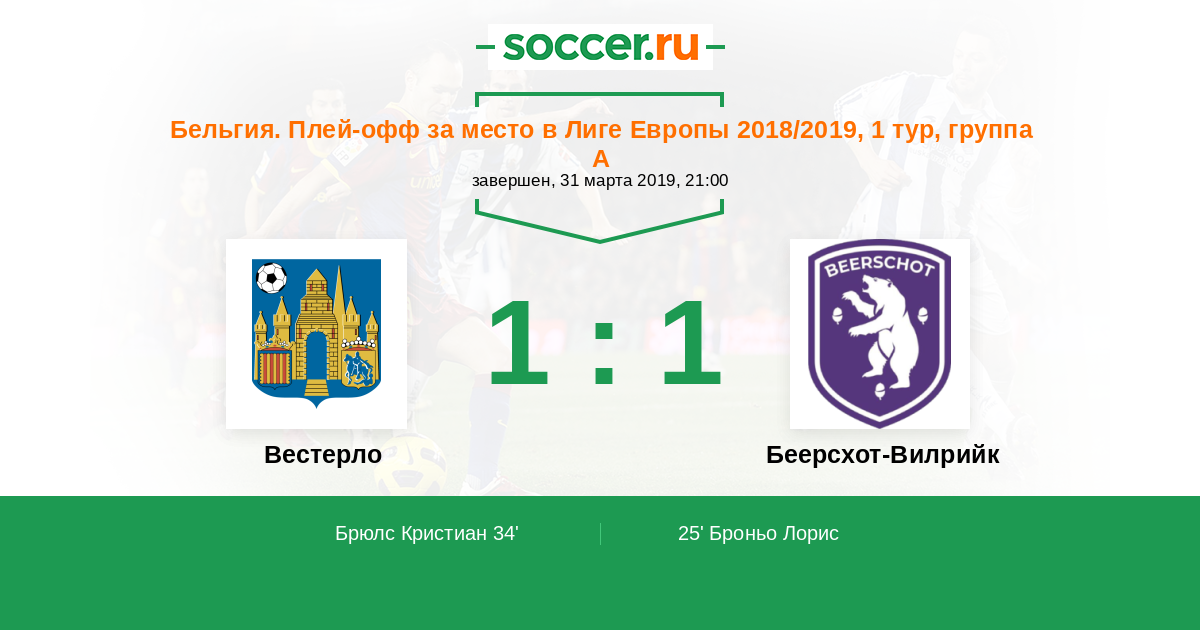 Протокол матча Вестерло против Беерсхот-Вилрийк