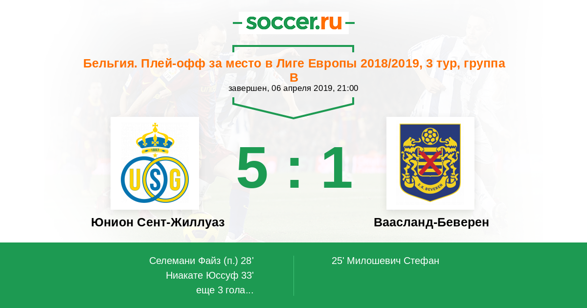 Протокол матча Юнион Сент-Жиллуаз против Ваасланд-Беверен