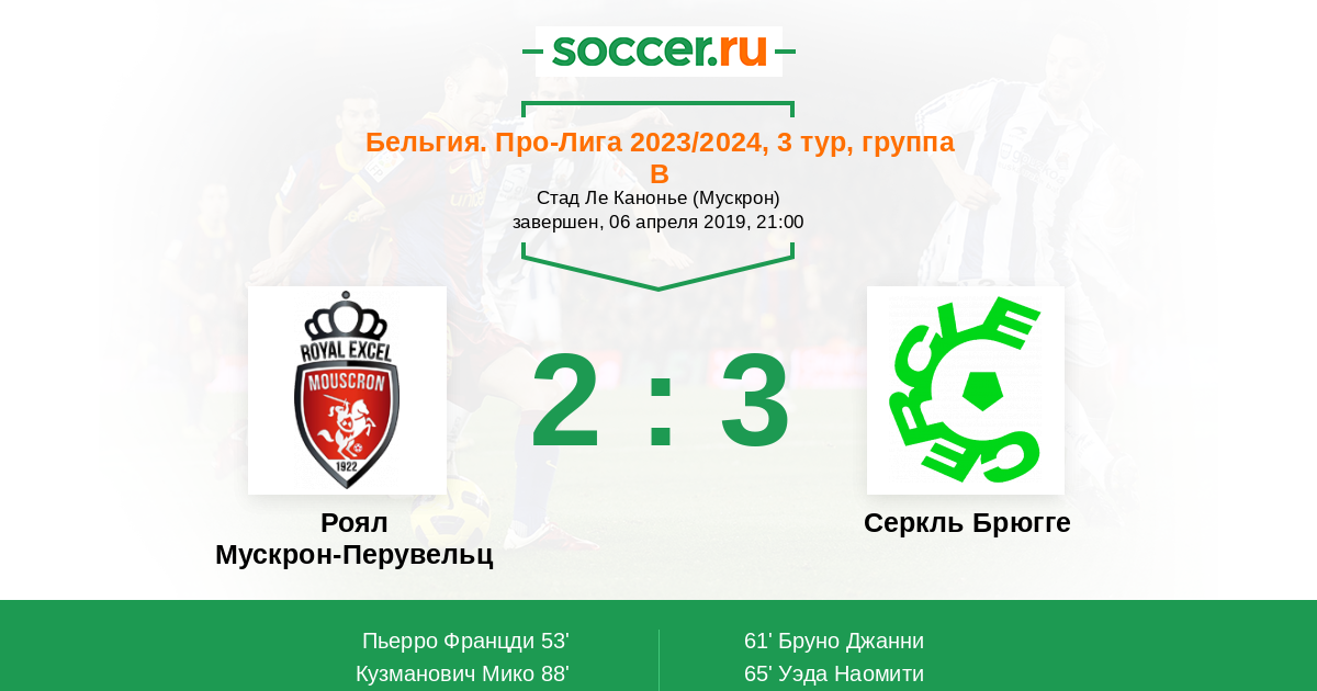 Протокол матча Роял Мускрон-Перувельц против Серкль Брюгге