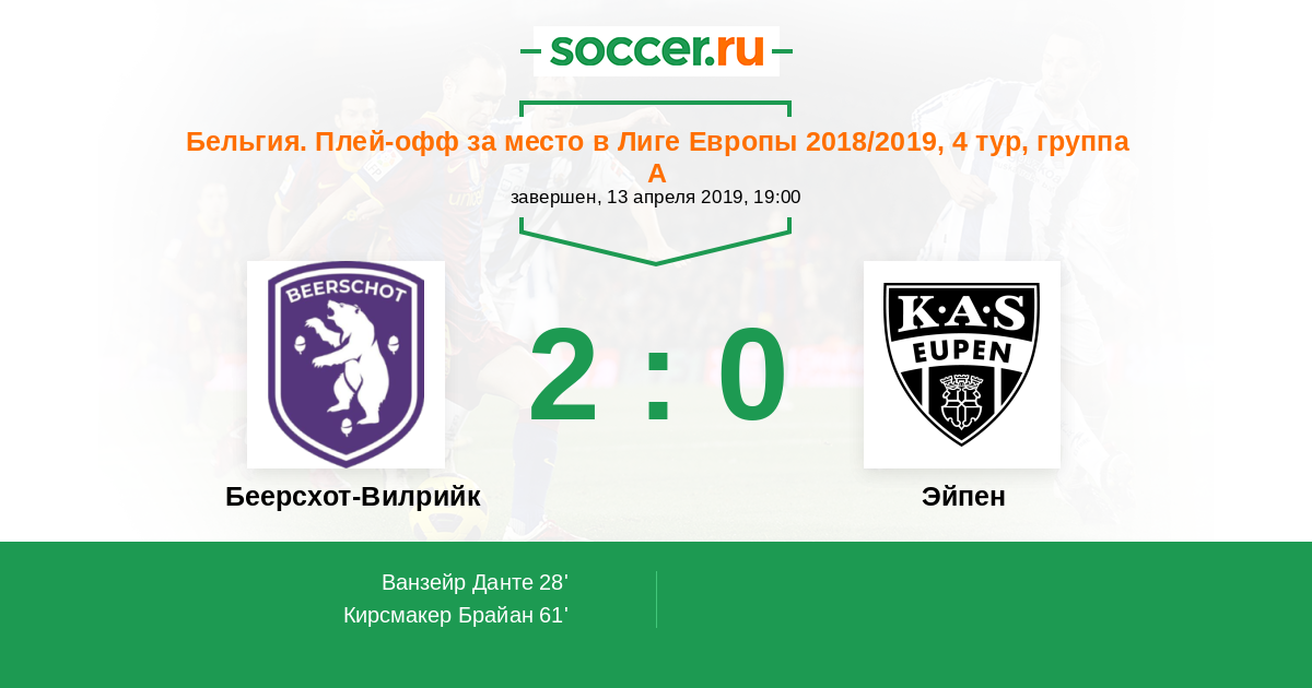 Протокол матча Беерсхот-Вилрийк против Эйпен