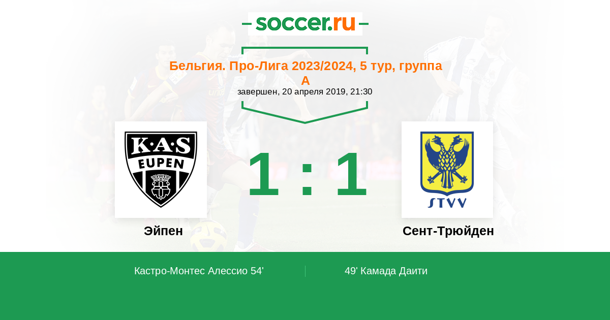 Протокол матча Эйпен против Сент-Трюйден