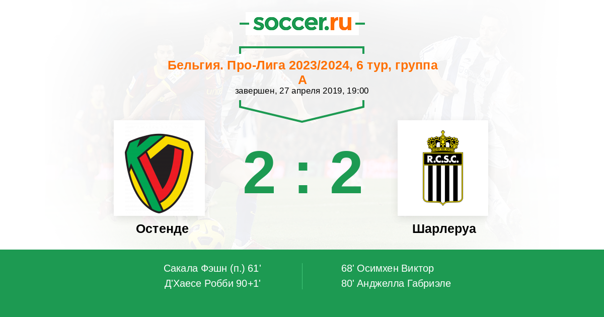 Протокол матча Остенде против Шарлеруа