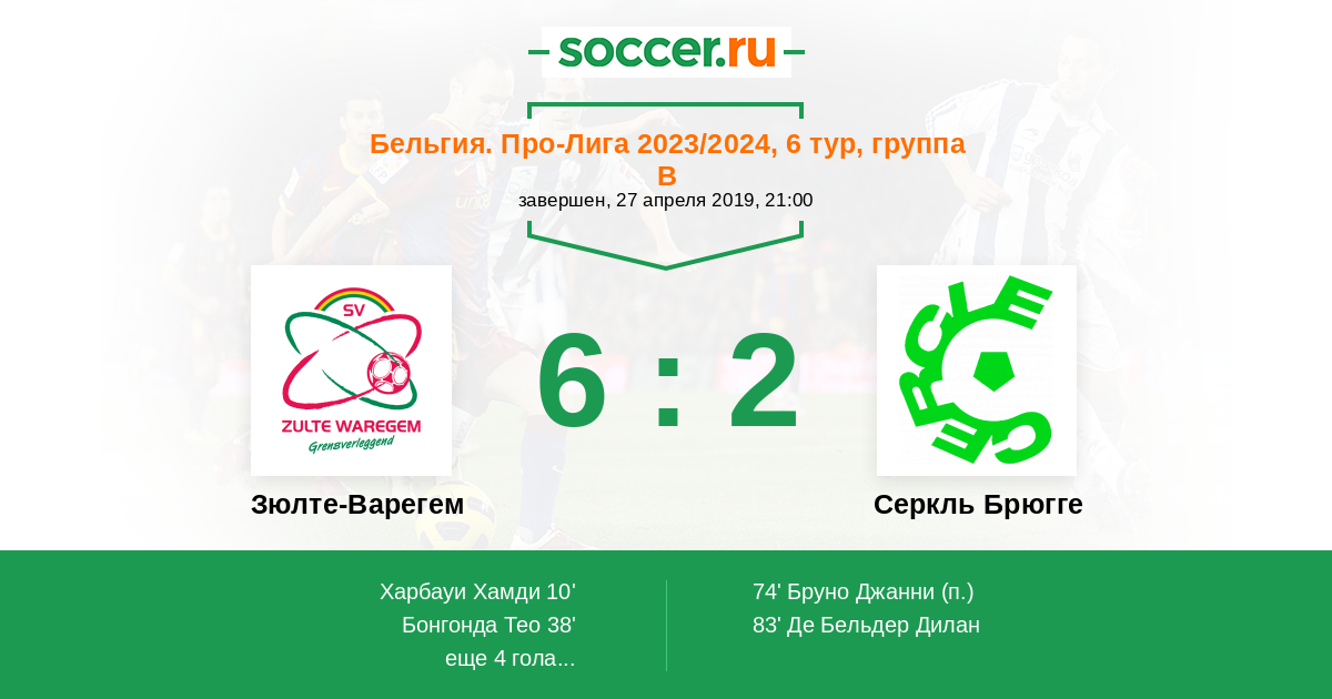 Протокол матча Зюлте-Варегем против Серкль Брюгге