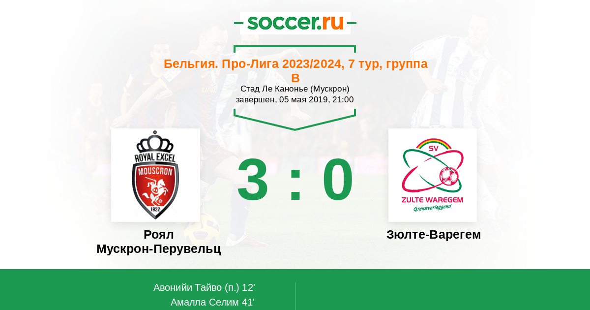 Протокол матча Роял Мускрон-Перувельц против Зюлте-Варегем