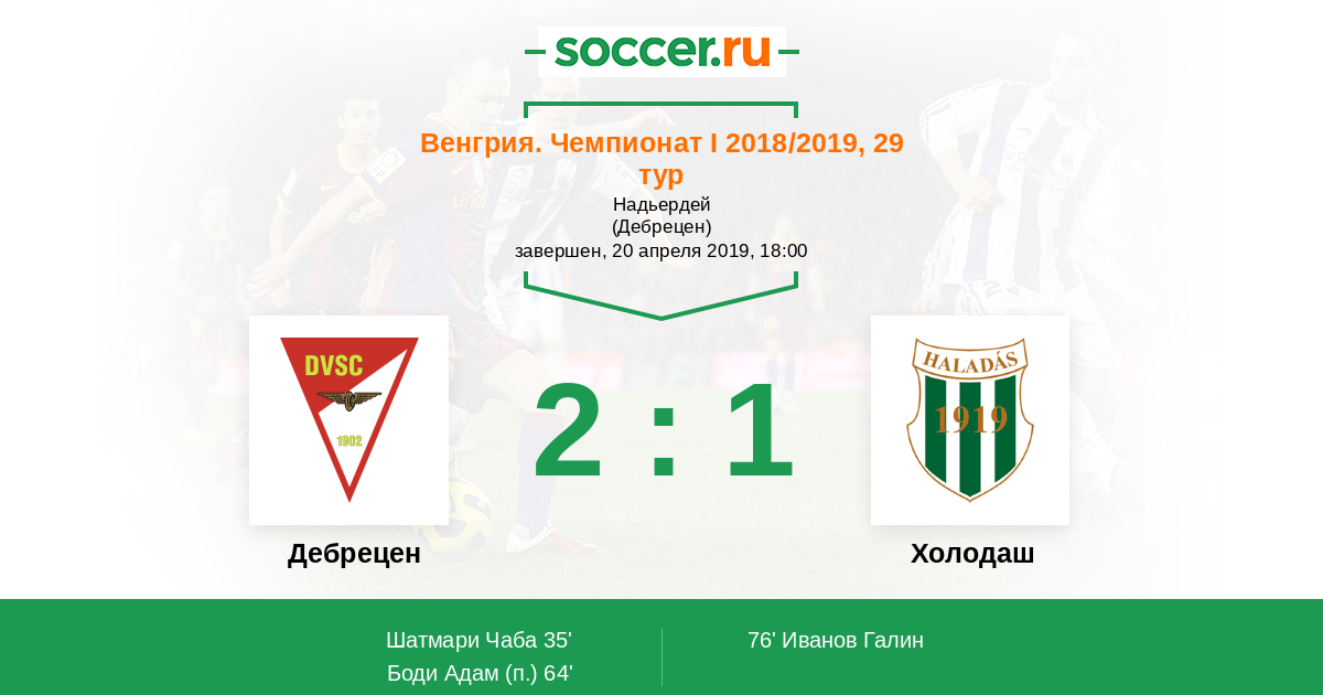 Протокол матча Дебрецен против Холодаш