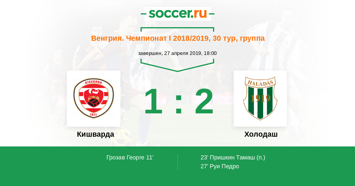 Протокол матча Кишварда против Холодаш