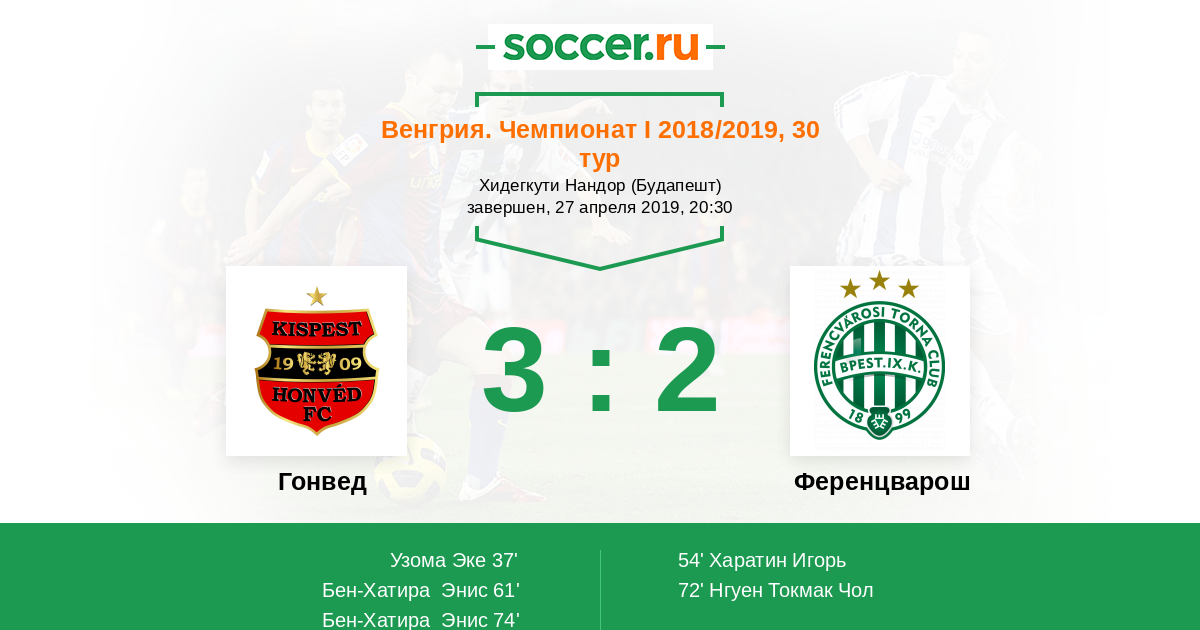 Протокол матча Гонвед против Ференцварош