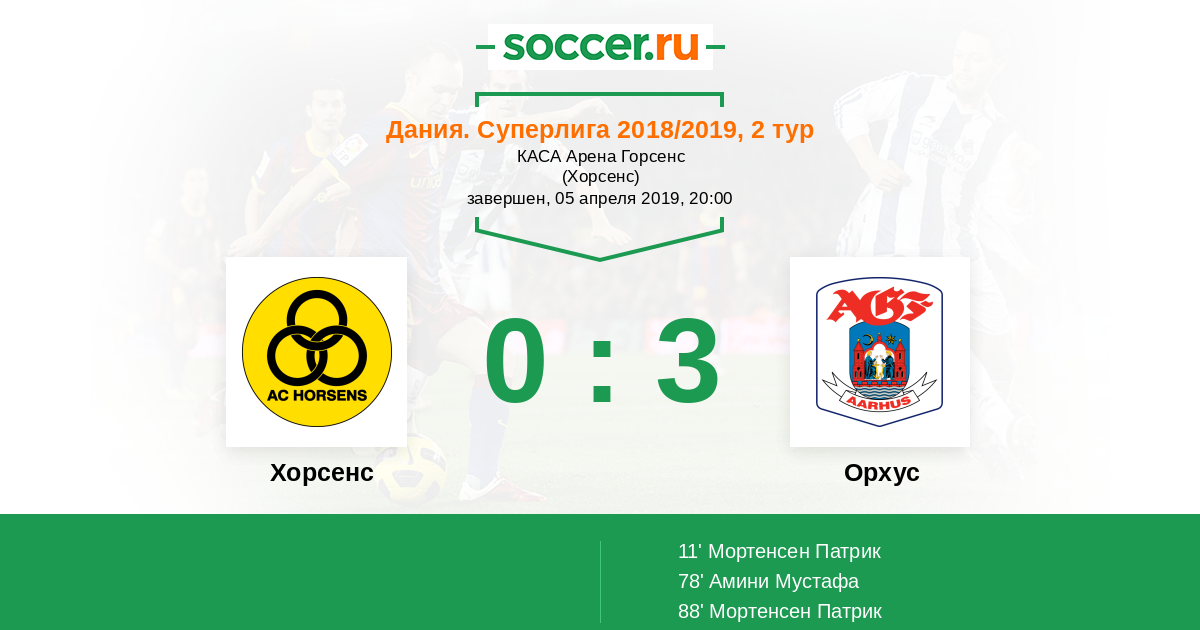 Протокол матча Хорсенс против Орхус
