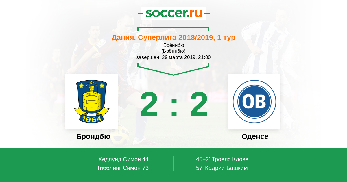 Протокол матча Брондбю против Оденсе