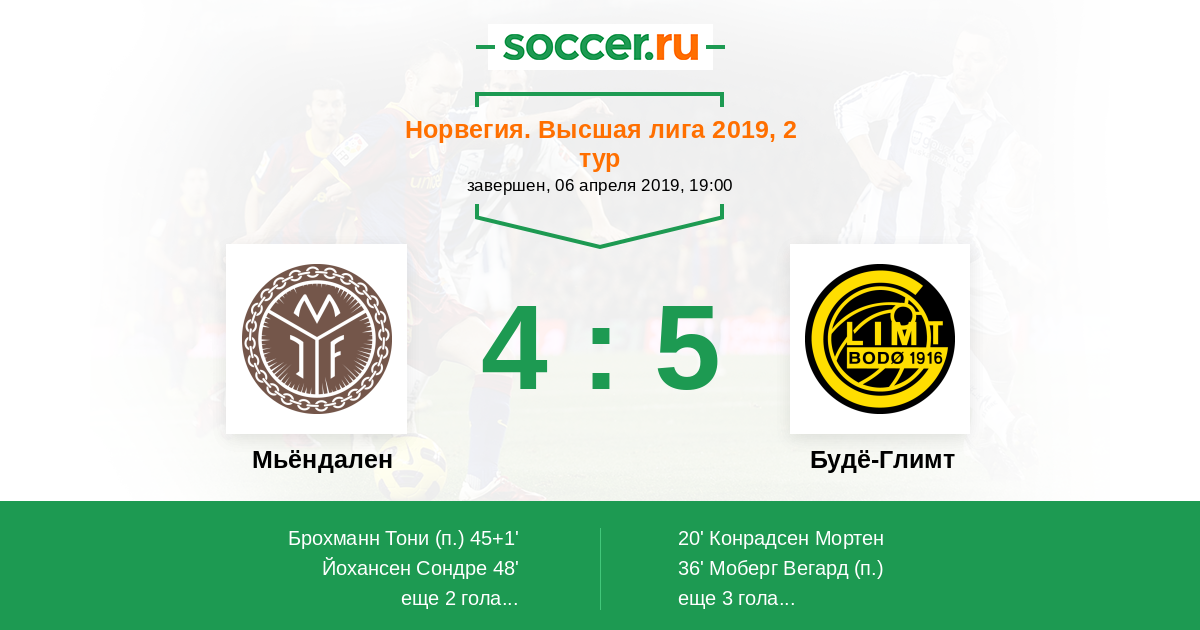 Протокол матча Мьёндален против Будё-Глимт