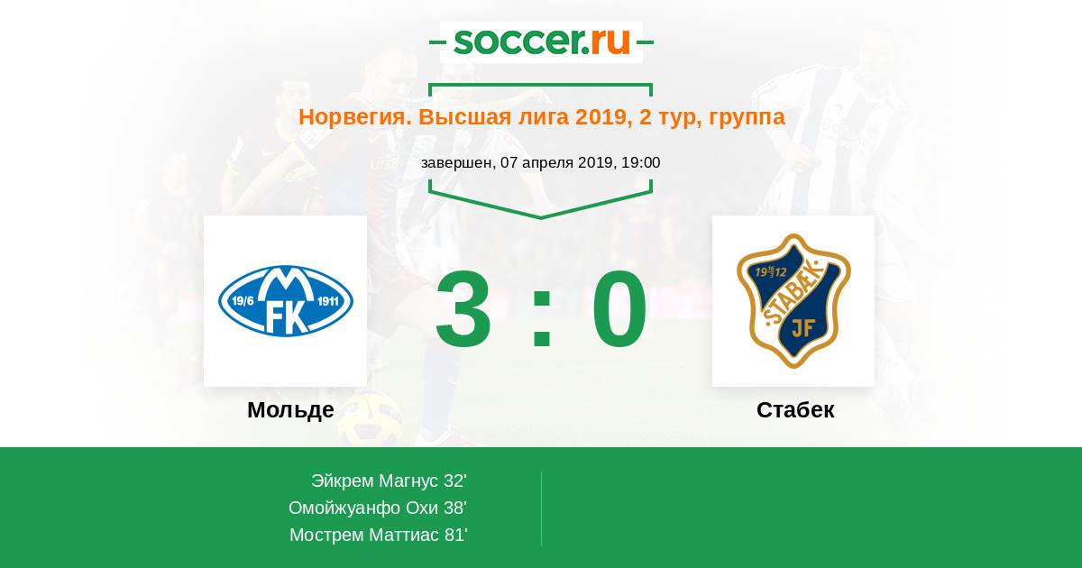 Протокол матча Мольде против Стабек