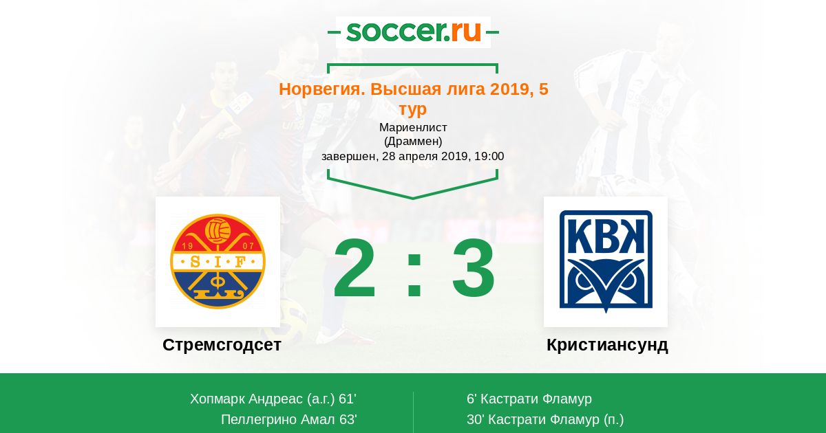Протокол матча Стремсгодсет против Кристиансунд