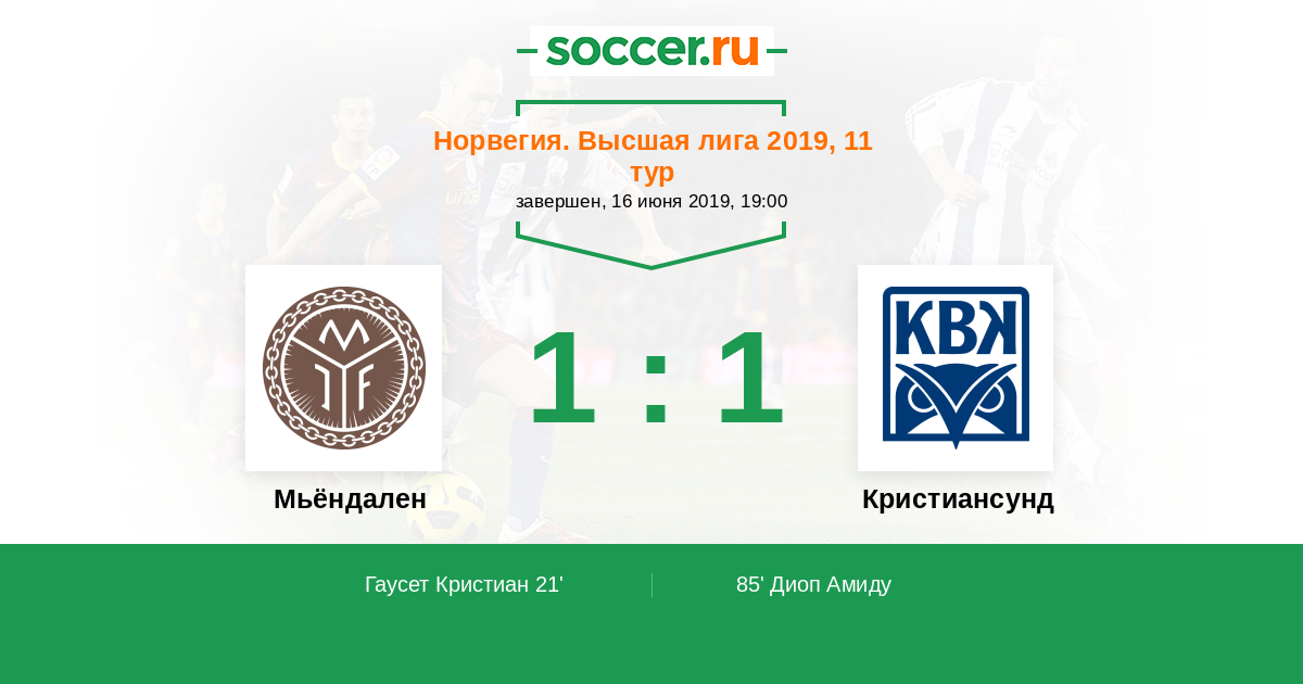 85' (1:1) Диоп Амиду (21) (Улвестад Дан (5))