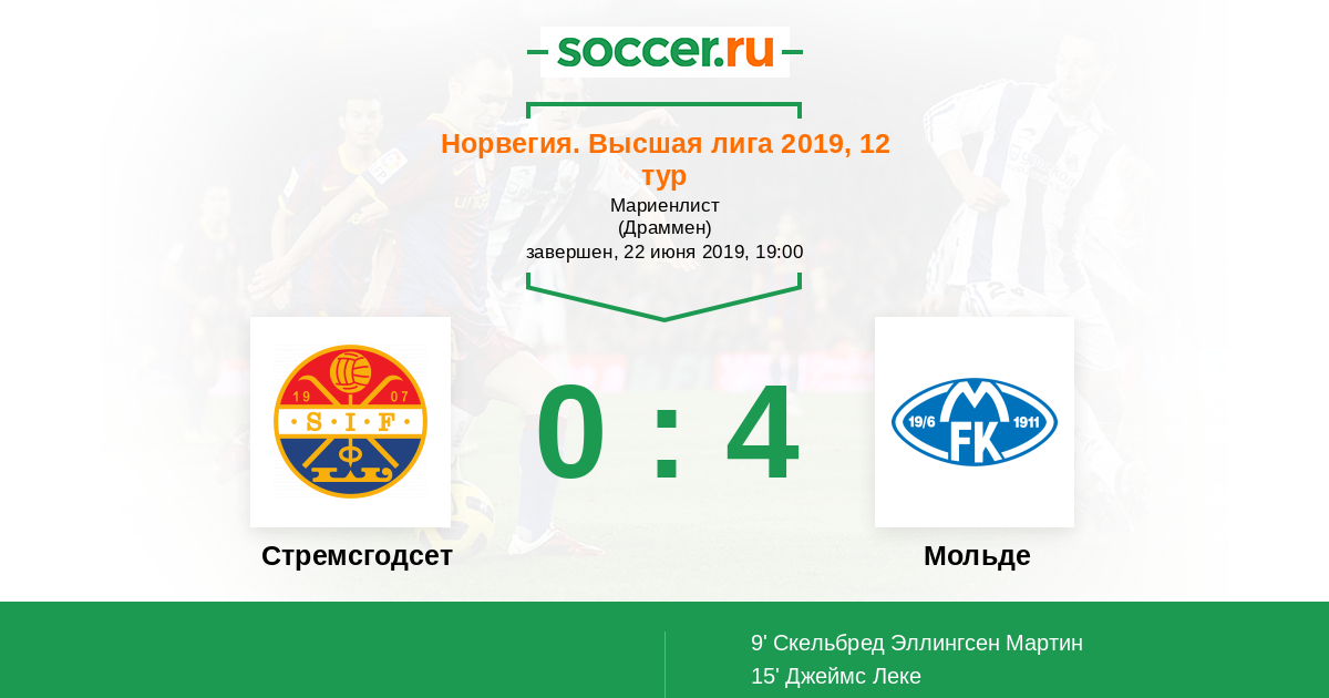 9' (0:1) Скельбред Эллингсен Мартин (11) (Бьорнбак Мартин (2))
