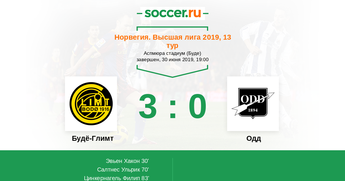 Протокол матча Будё-Глимт против Одд