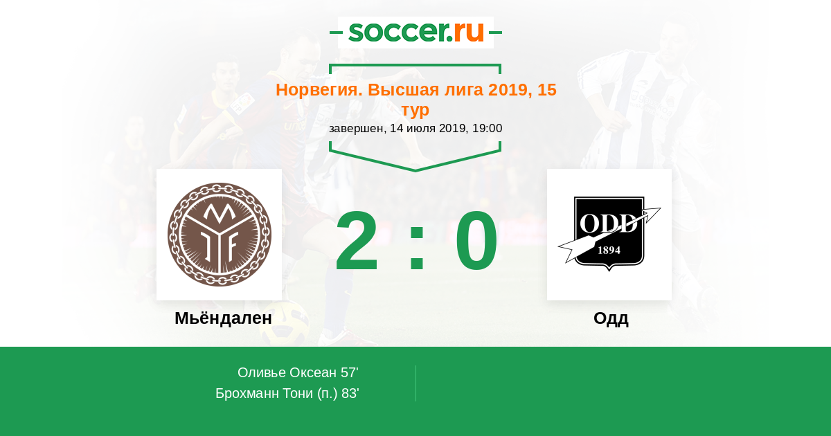 57' (1:0) Оливье Оксеан (10) (Сольберг Йоахим (6))