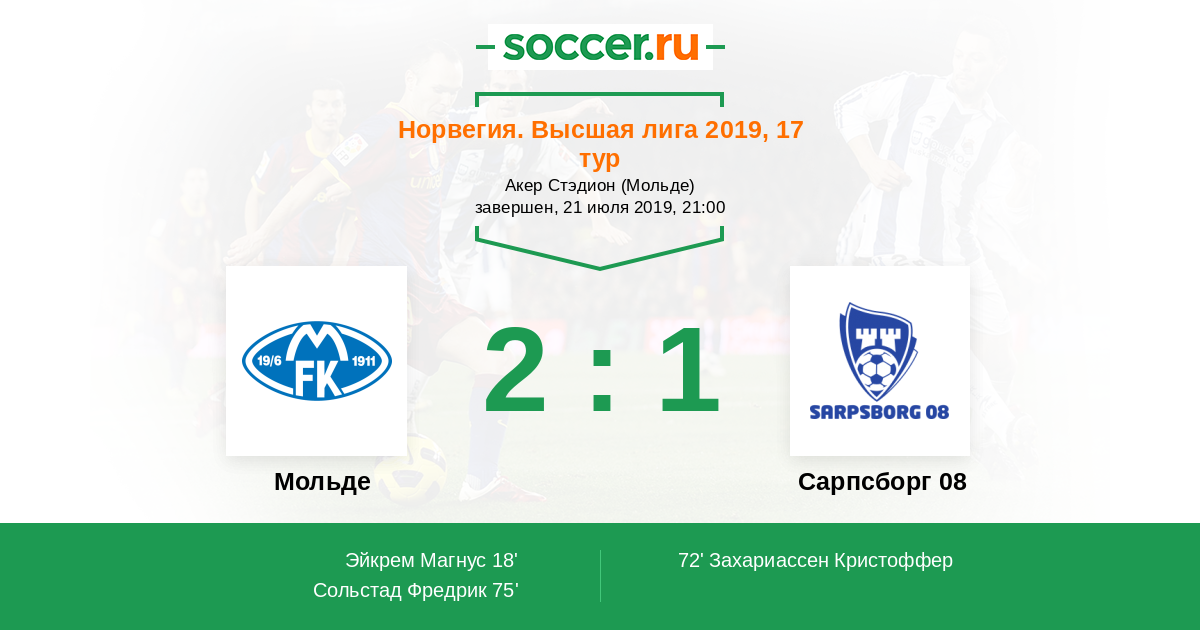 Протокол матча Мольде против Сарпсборг 08