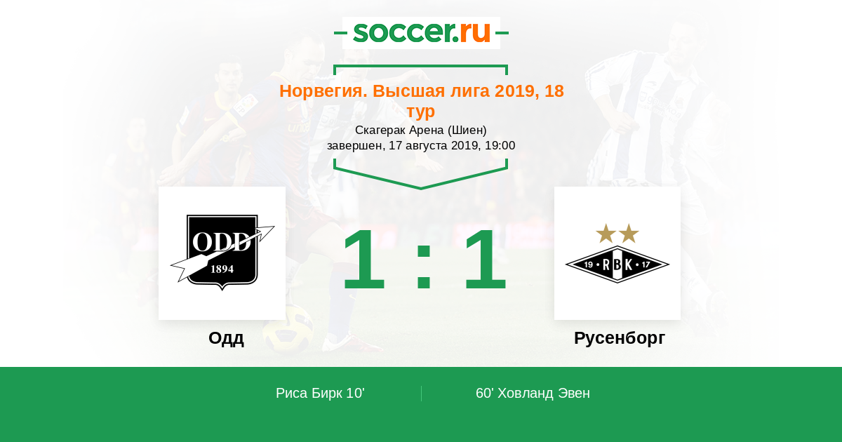 60' (1:1) Ховланд Эвен (16) (Хеденстад Вегар (2))