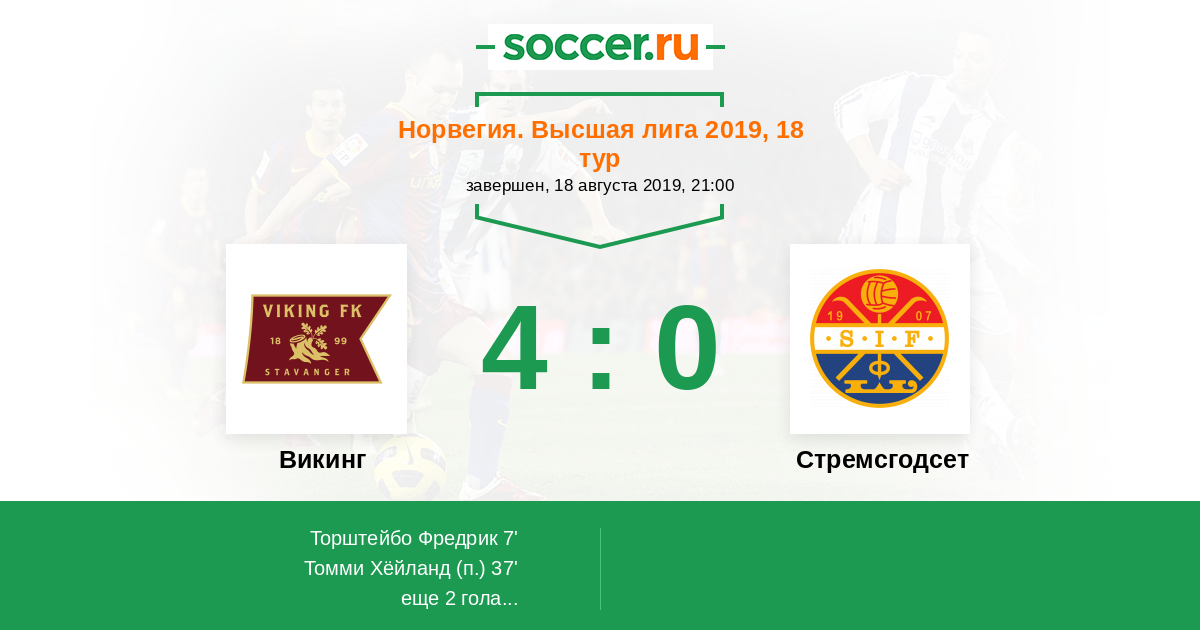 Протокол матча Викинг против Стремсгодсет