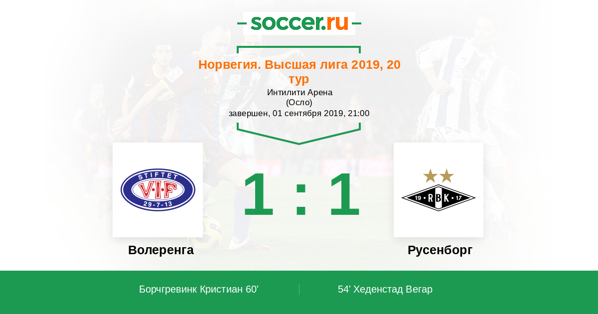 Протокол матча Волеренга против Русенборг