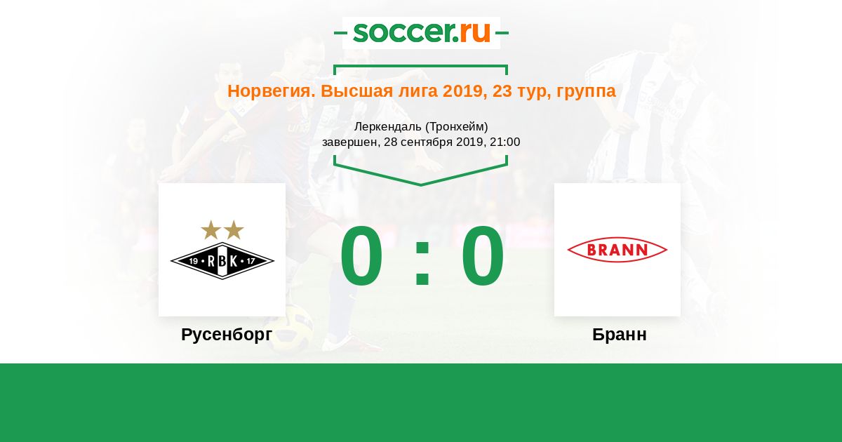 Протокол матча Русенборг против Бранн