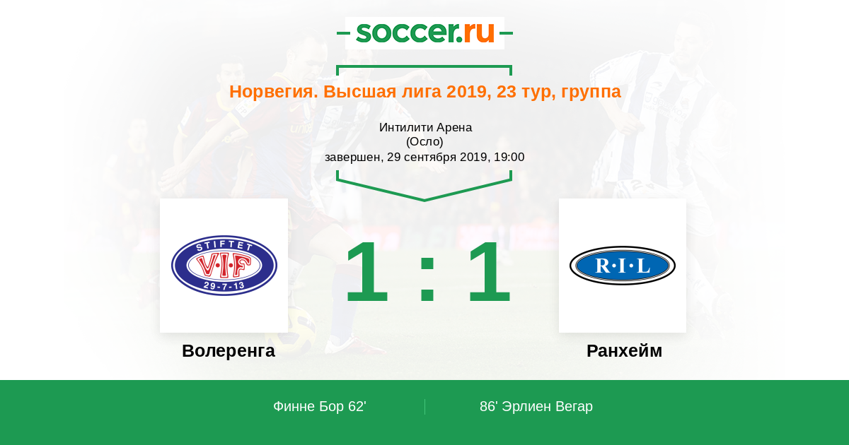 Протокол матча Волеренга против Ранхейм