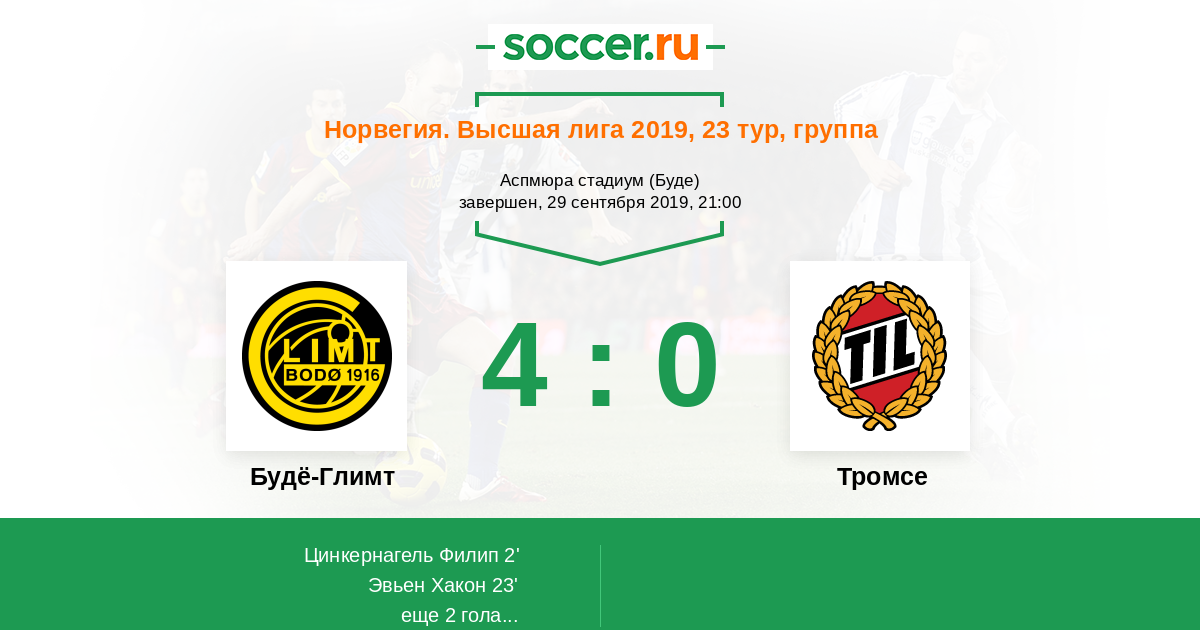 23' (2:0) Эвьен Хакон (26) (Даль Рейтан Эрленд (29))