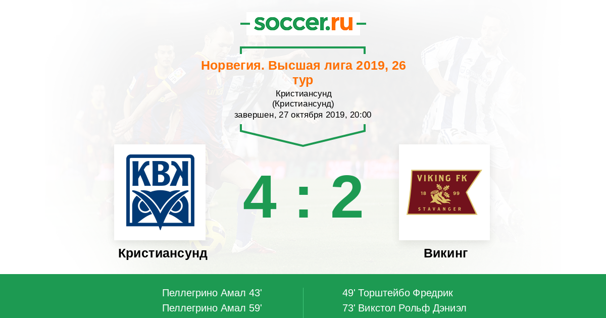 Гол90+4' (4:2) Сорли Сондре (24) (Ольсен Мейнхард (16))