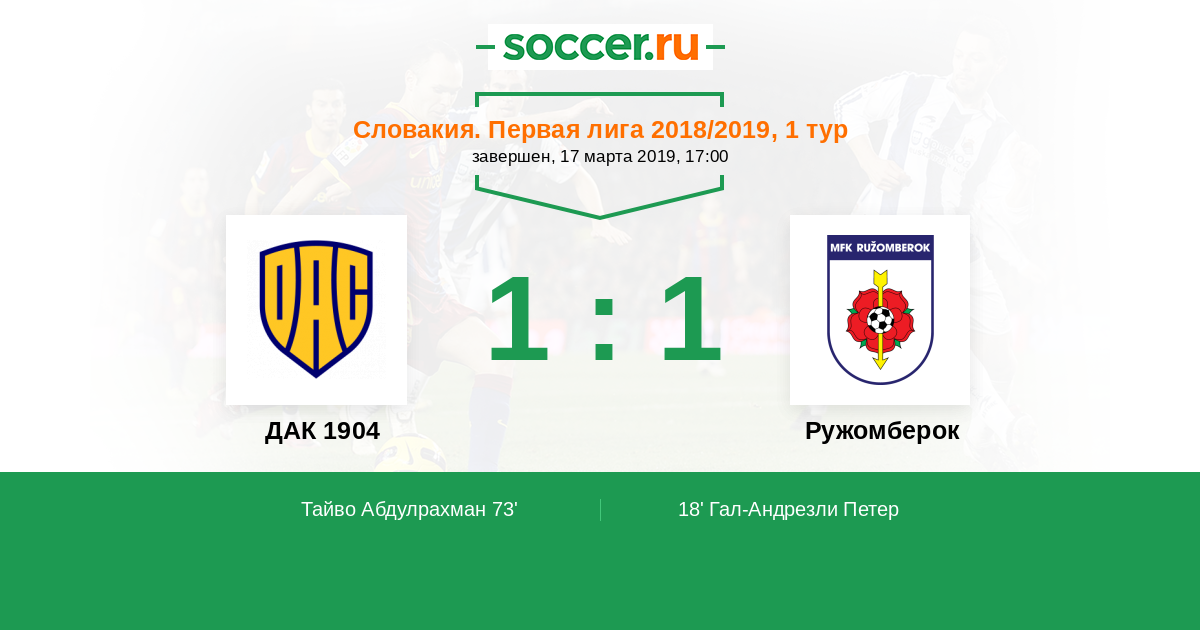 Протокол матча ДАК 1904 против Ружомберок