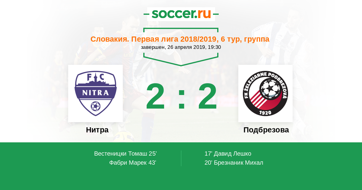 Протокол матча Нитра против Подбрезова