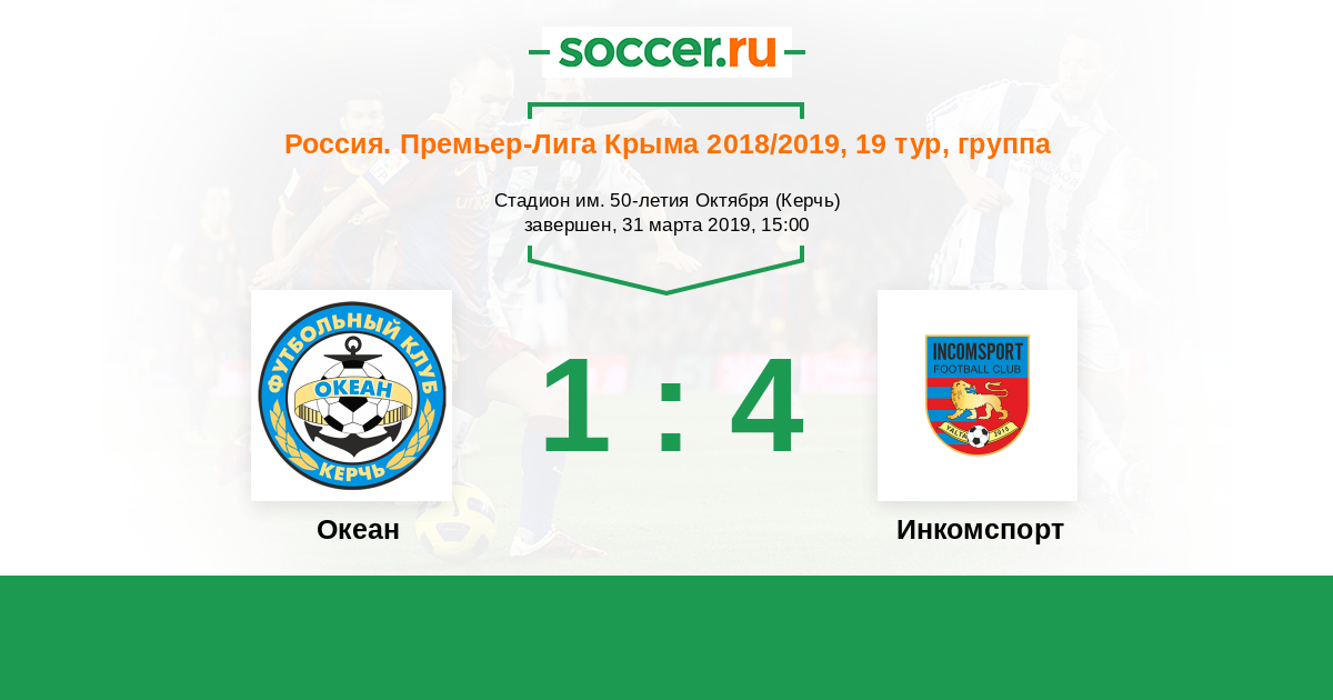 Россия. Премьер-Лига Крыма 04.09.2019 Океан Логотип футбольный клуб Океан (Керчь) 0:1 Логотип футбольный клуб Инкомспорт (Ялта) Инкомспорт