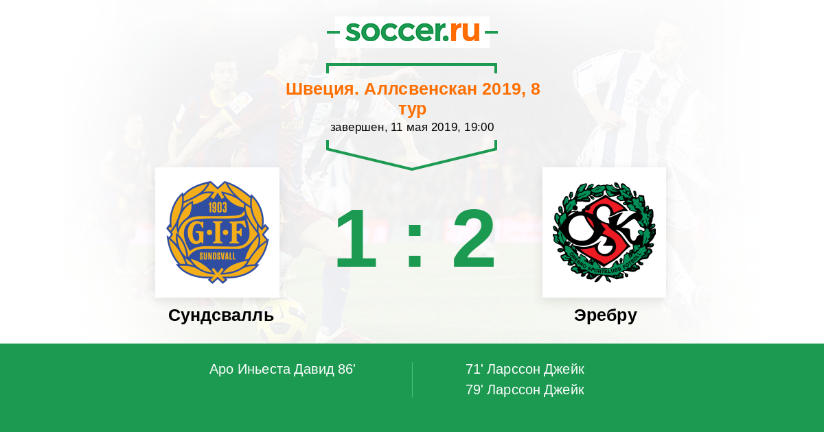 Протокол матча Сундсвалль против Эребру