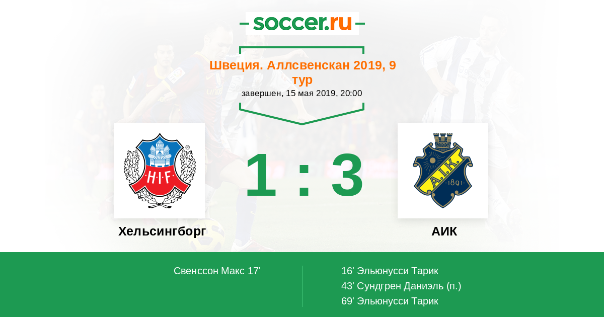 69' (1:3) Эльюнусси Тарик (20) (Ларссон Себастьян (7))
