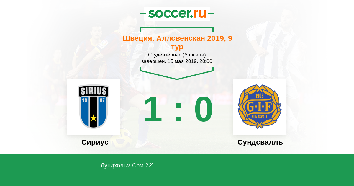 Протокол матча Сириус против Сундсвалль