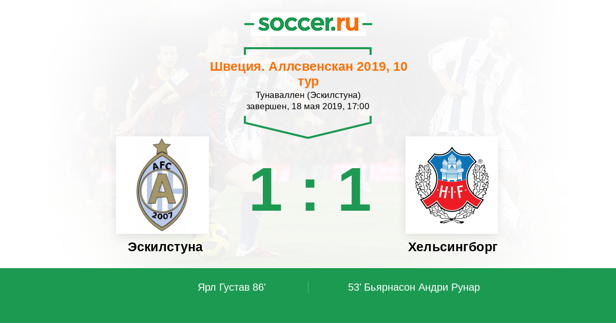 Протокол матча Эскилстуна против Хельсингборг