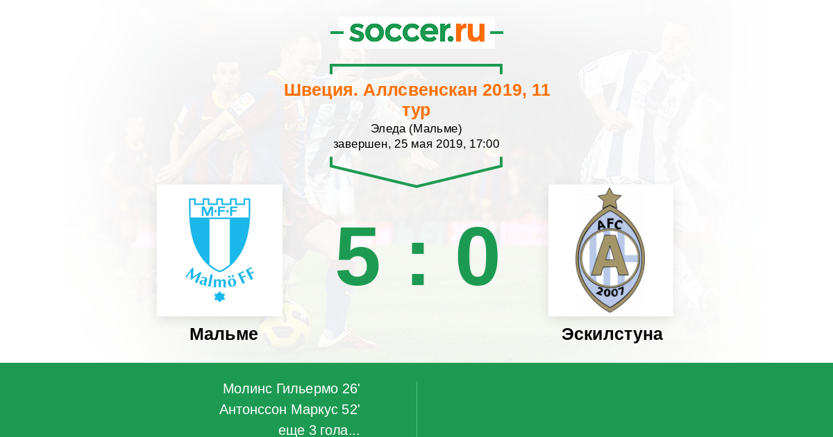 Протокол матча Мальме против Эскилстуна