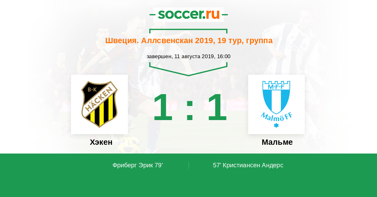 Протокол матча Хэкен против Мальме
